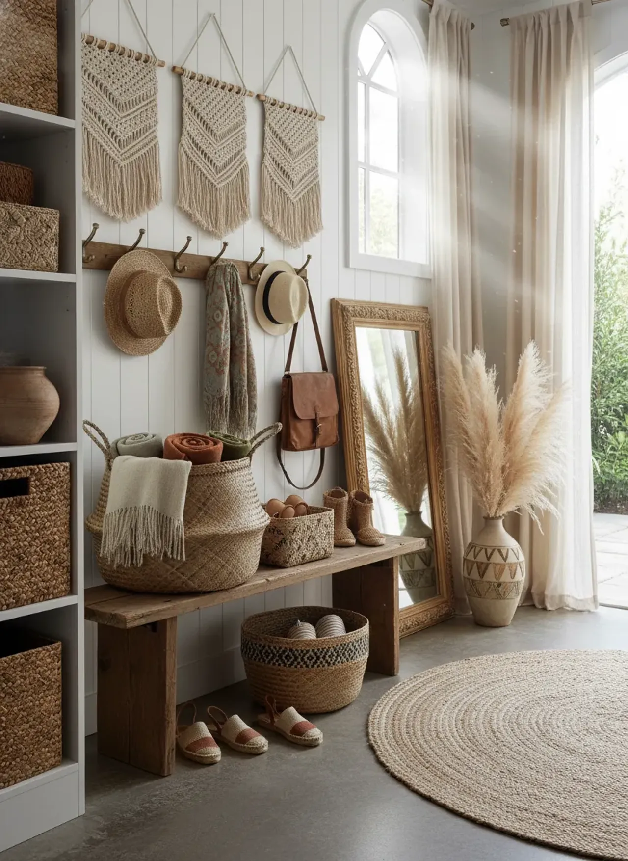 Boho Mudroom Ideas: Eclectic Entryway Designs with Woven Storage Accents